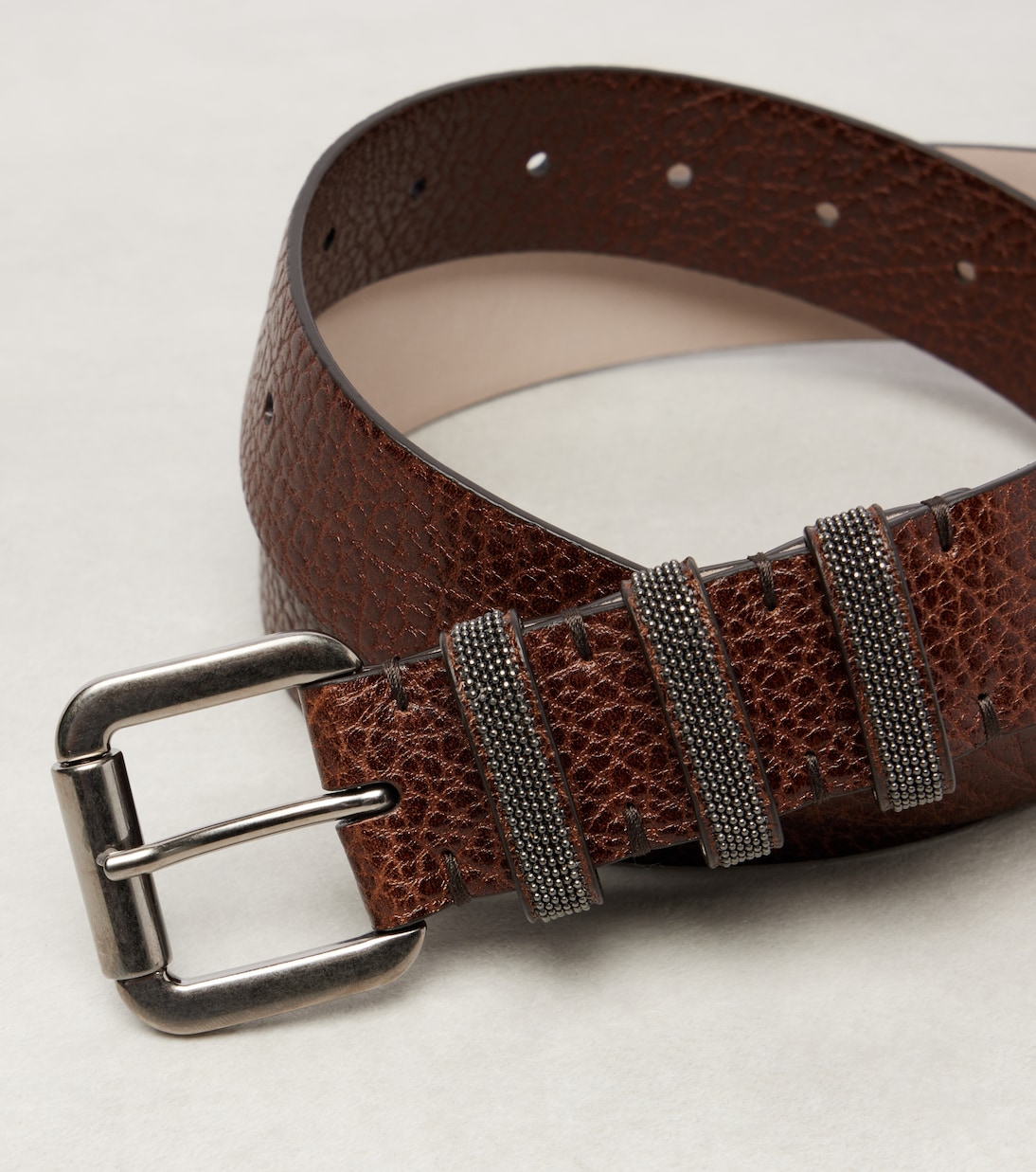 Bringen Sie Ihre Persönlichkeit mit diesem Gürtel von Brunello Cucinelli zum Ausdruck. Das in Italien aus geschmeidigem braunem Leder gefertigte Modell ist mit dezenten Monili-Perlen an der Gürtelschlaufe versehen.