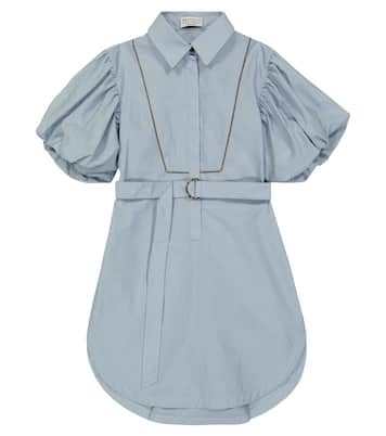 Besondere Anlässe verlangen nach ganz besonderen Kleidern, wie diesem Modell mit Puffärmeln von Brunello Cucinelli Kids. Es wurde aus einem Baumwollgemisch gefertigt und am Oberteil mit den charakteristischen Monili-Perlen des Labels verziert.
