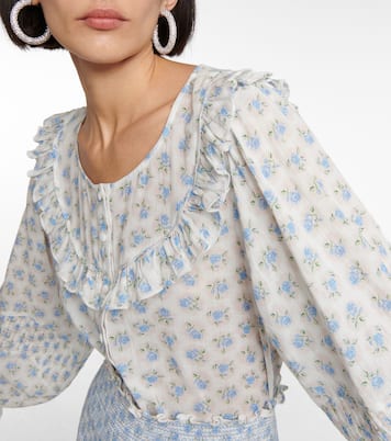 This elegant floral blouse from LoveShackFancy is ideal for garden parties and picnics alike. The Goldie long sleeve design features a ruffled neckline and smocked detailing at the cuffs.