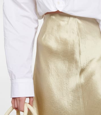 Bookmark Vince for modern wardrobe staples like this lustrous pale golden satin midi skirt. The slip silhouette has a mid-rise waist and elegant fluted calf-grazing hem.