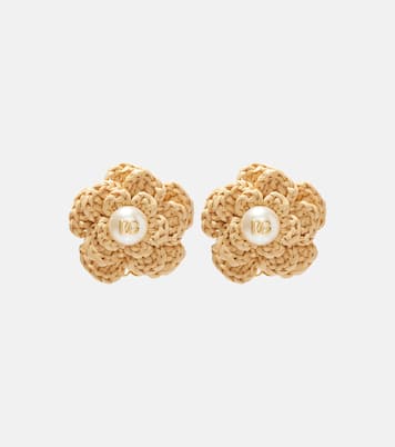 Complete your warm-weather ensembles with elegant accents like these clip-on earrings from Dolce&Gabbana. The floral design is made from a raffia-effect material and features faux pearls with DG motifs at the center.