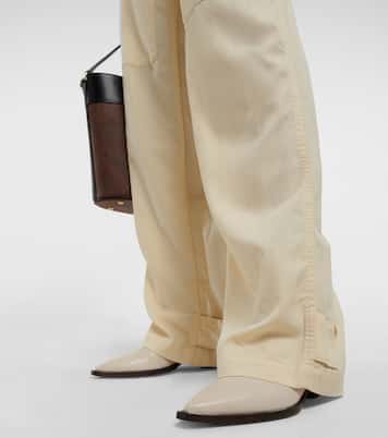 Ce pantalon d’Etro est un exemple parfait de déconstruction avec ses empiècements non conventionnels et ses poches. Il est réalisé en laine mélangée, présente une taille haute et une coupe légèrement évasée.