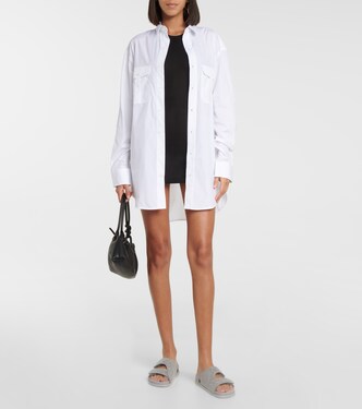 Cette robe noire de WARDROBE.NYC est inspirée de l’univers du sport. Cette pièce courte est réalisée en jersey de coton à mailles côtelées venant épouser la silhouette et dispose d’un corsage façon dépourvu de manches.