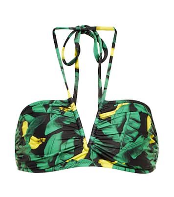 Dieses Bikini-Oberteil von Ganni besticht durch einen fröhlichen Bananenprint. Das Bandeau-Design wird von einem V-förmigen Cut-out und einem Neckholder-Träger zum Binden definiert.