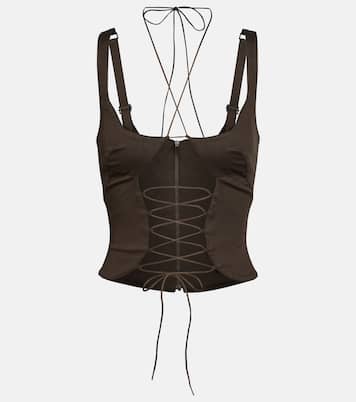 Bei KNWLS finden Sie sinnliche Silhouetten und elegante Basics für Ihre Garderobe. Dieses Bustier-Top aus einem elastischen Baumwollgemisch verfügt über einen Neckholder-Ausschnitt und eine anpassbare geschnürte Vorderseite.