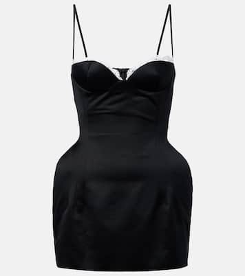 Alle Häkel-Styles von Magda Butrym werden in Polen meisterhaft von Hand gefertigt. Dieses aus Baumwollsatin gefertigte Minikleid verfügt über ein Bustier-Oberteil mit Details aus Häkelstrick und gepolsterte Hüften für einen skulpturalen Look.