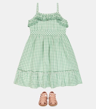 Dieses Kleid von Polo Ralph Lauren Kids ist eine perfekte Wahl für Picknicks und Spielverabredungen. Das Design aus leichtem Baumwoll-Madras mit Gingham-Print verfügt über einen gerüschten Ausschnitt mit Details aus Lochspitze und einen Volantsaum.
