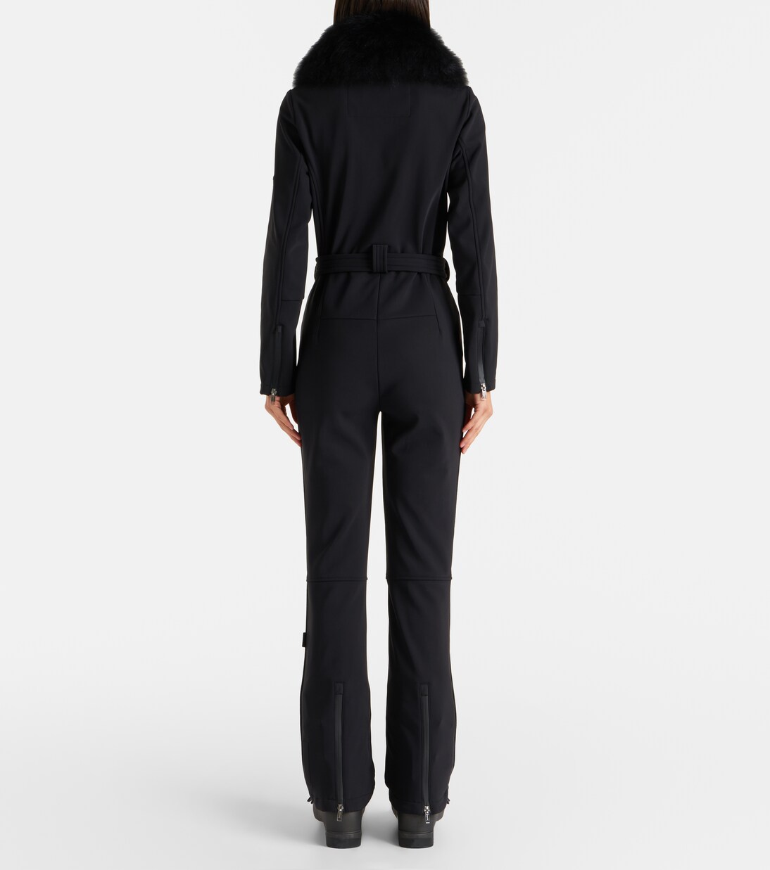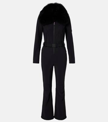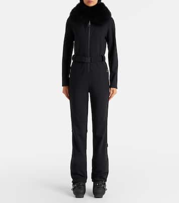 This ski suit from Yves Salomon promises style on and off the slopes. Made from a technical fabric, the style is complete with a plush shearling trim at the collar and a detachable belt.