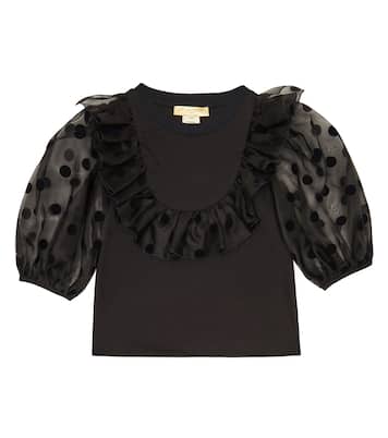 Ce top à pois de Stella McCartney Kids est tout ce qu’il faut pour les sorties de votre enfant. Il présente un corsage en coton bordé de jolis volants et des manches bouffantes semi-transparentes.