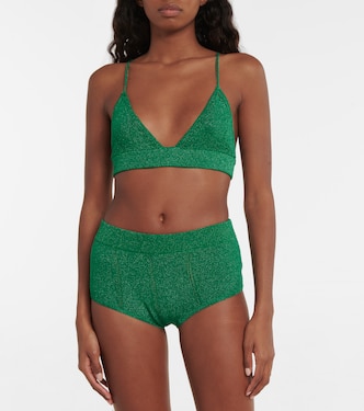 Adoptez l’allure disco-glamour de Dodo Bar Or avec cette culotte, pile dans la tendance des pièces brillantes de la saison. Elle est réalisée en maille agrémentée de fils métallisés et dévoile des détails ajourés sur le devant et à l’arrière.