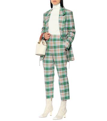Teinté d'élégance britannique avec ses carreaux tartan aux nuances de vert, de gris et d'orange et sa coupe raccourcie à taille haute, le pantalon Hani de Tibi déploie en prime une étoffe de coton mélangé au tombé impeccable. Légèrement ajusté, ce modèle tendance et coloré se portera naturellement avec le blazer assorti et un top uni pour un ensemble business audacieux.