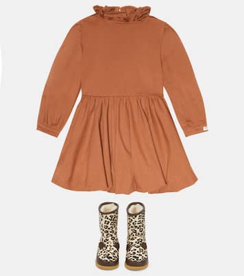 Questo delizioso abito di Donsje è realizzato in misto cotone con maniche lunghe e scollo con ruches.