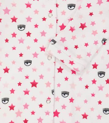 Questa tutina in cotone di Monnalisa x Chiara Ferragni è decorata con una deliziosa stampa arcobaleno all-over con le stelle e l’iconico occhio. È rifinita con un colletto smerlato e bottoni a pressione sul davanti per facilitare il cambio.