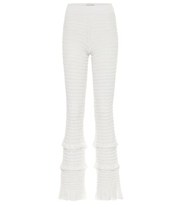 Sperimentate con la linea texturizzata dei pantaloni bianchi firmati da Acne Studios per la nuova stagione: realizzati in cotone con una punta di stretch, hanno vita alta e gamba leggermente svasata con ruches. Imbattibili con il top in coordinato e una giacca di jeans oversize.
