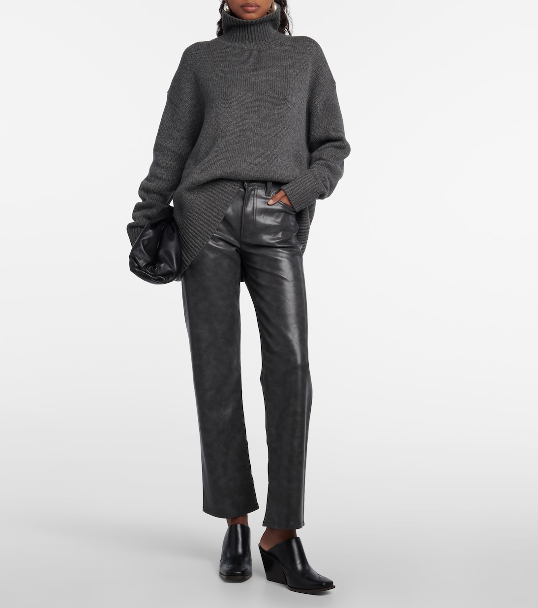 I pantaloni Sloane di Agolde sono realizzati nell’iconica pelle riciclata del brand. Il modello presenta una silhouette a vita media con gamba dritta e lunghezza alla caviglia.
