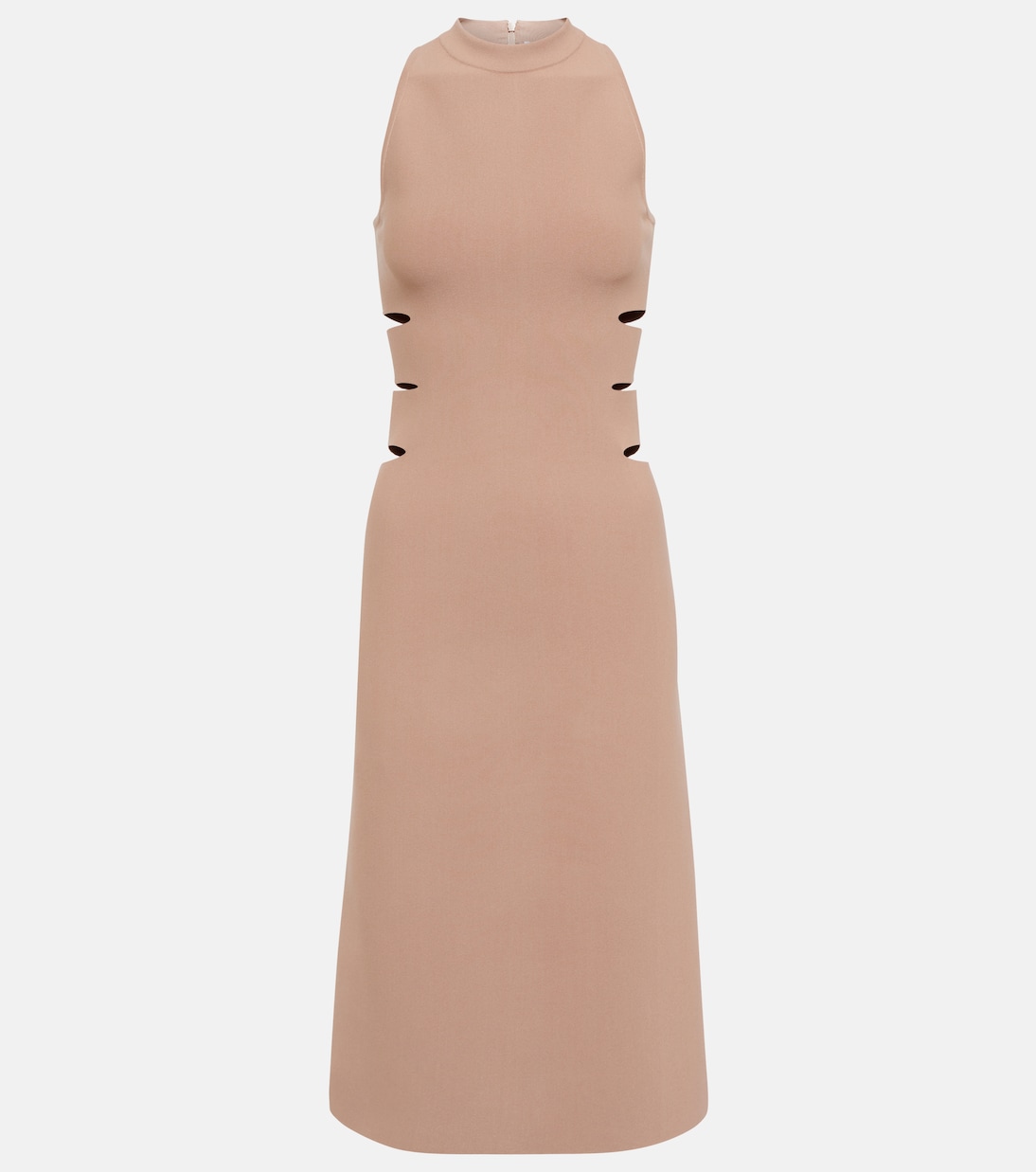 Dal deciso design minimal, questo abito midi di Alaïa è definito da caratteristici dettagli cut-out sui lati. Realizzato in tessuto jersey, ha un girocollo e una zip sul retro.