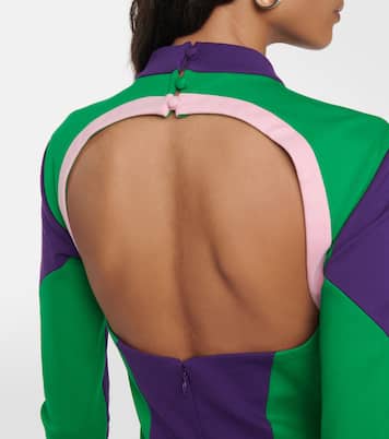 Chiamato come l'iconico nightclub di New York, Area porta il fascino del party dressing in una nuova dimensione. Questo miniabito colorato presenta un top bustier ritagliato e impreziosito da cristalli sulle coppe.