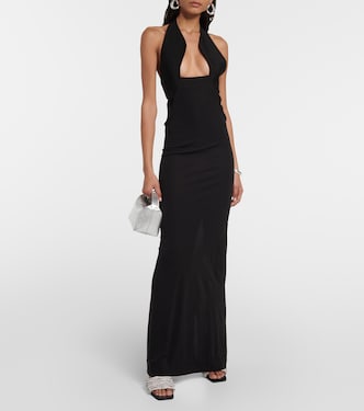 Questo abito lungo di Christopher Esber è realizzato in jersey di misto cotone in una silhouette aderente con schiena scoperta e un profondo scollo all’americana.