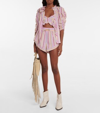 Isabel Marant è pronta ad accompagnarvi nelle giornate più calde con gli shorts Thalia, realizzati in cotone a righe dal taglio alto sgambato, con coulisse in vita arricciata. Abbinateli alla bralette coordinata Telmeni dello stesso brand.