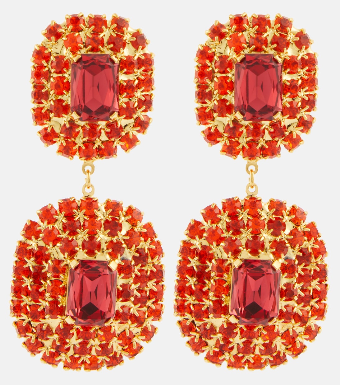 Aggiungete un tocco glamour ai vostri look eleganti con questi orecchini pendenti decorati di Magda Butrym. I pendenti partono da delle piccole gemme dal taglio smeraldo e sono circondati da scintillanti cristalli arancioni.