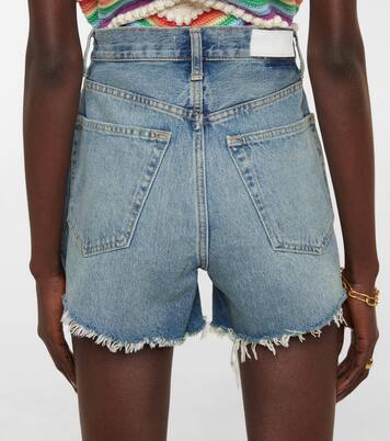 Gli shorts 50s di Re/Done sono perfettamente distressed per un autentico effetto vissuto. Realizzati in jeans di cotone rigido in un lavaggio celeste polvere, presentano baffature lungo i fianchi.