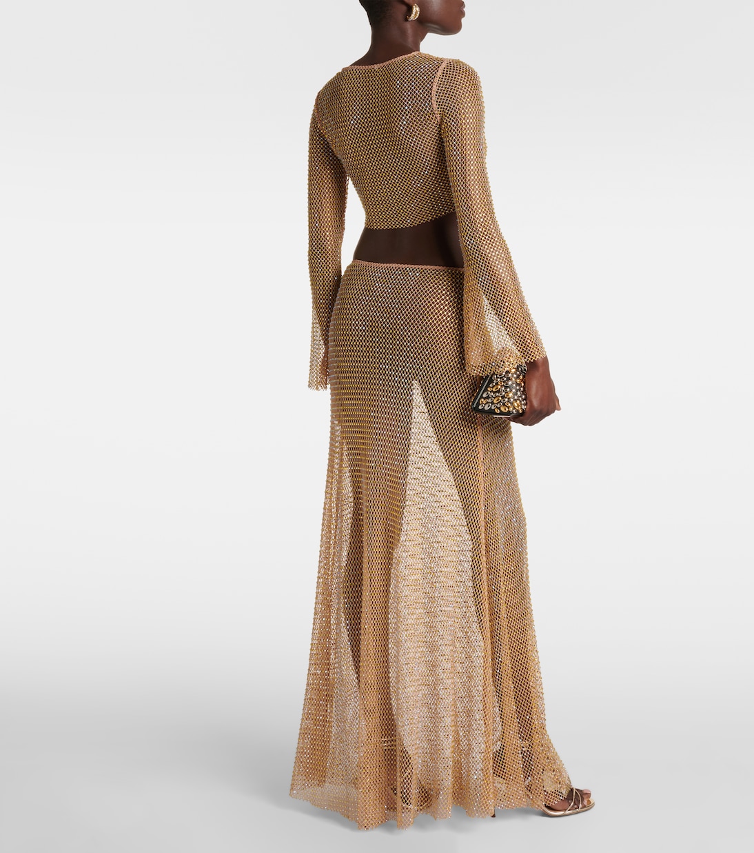 Gonna lunga in mesh con cristalli