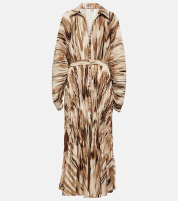 I design di forte impatto targati Simkhai uniscono una costruzione innovativa ispirata all’architettura e alla scultura con dei dettagli realizzati a mano. L’abito midi Indiana è un modello elegante caratterizzato da una stampa astratta e da un’elaborata struttura plissettata.
