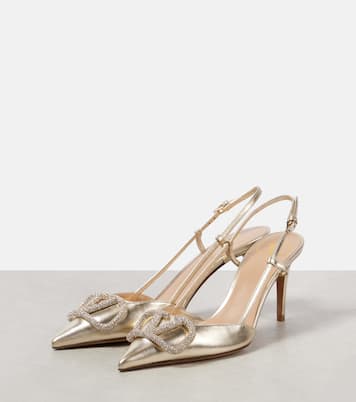 Pumps slingback VLogo Signature in pelle metallizzata