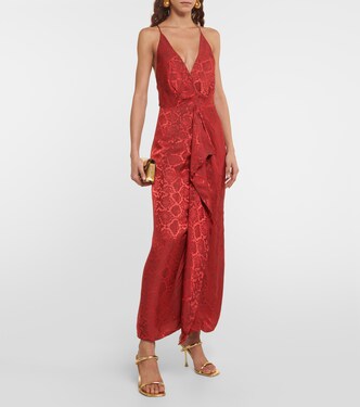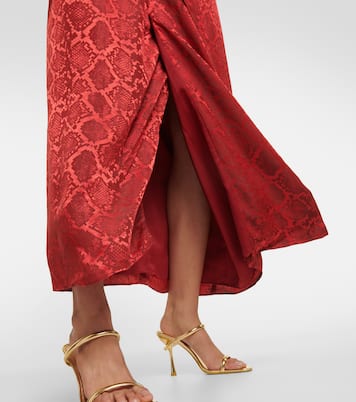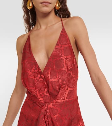 Taking inspiration from sculpture and architecture, Simkhai's impactful designs combine innovative construction with hand-detailing. The Carmine maxi dress is made from snake-print satin with a gathered waist and an alluring V-neckline.