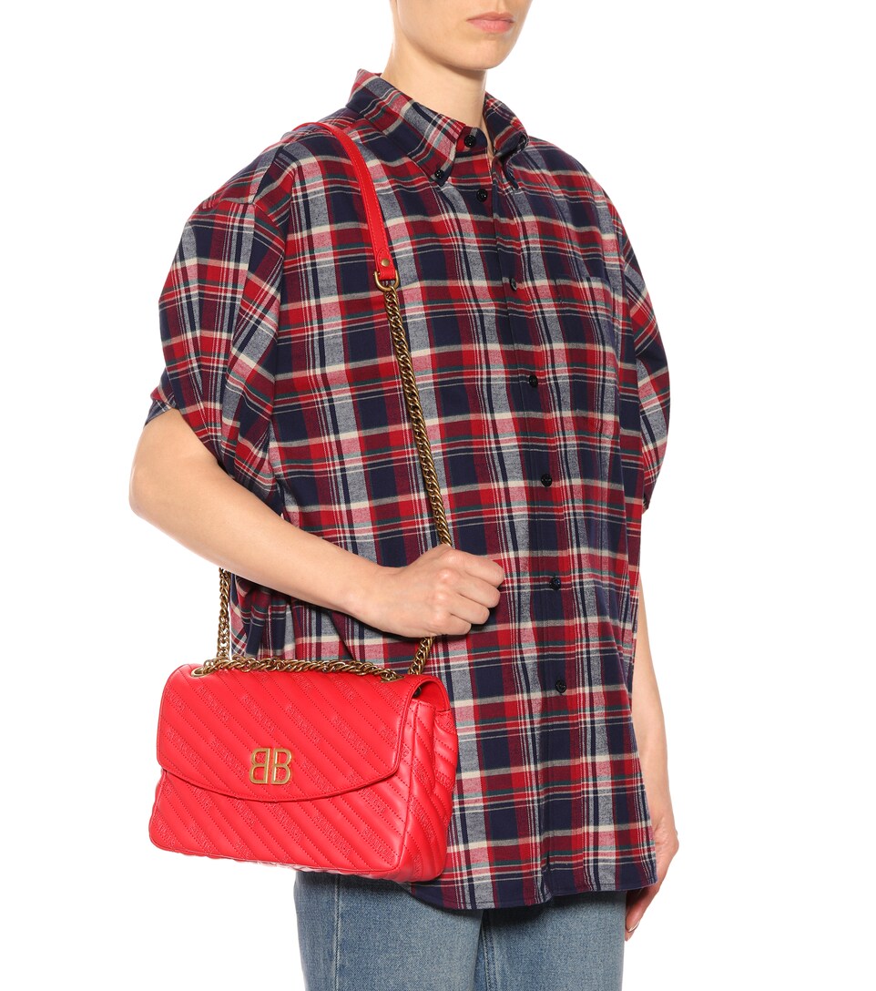 There's so much to adore about Balenciaga's modern, ladylike BB Round bag: crafted in Italy from matelassé leather, the classic red style features sporty logo branding in a diagonal tonal embroidery – subtly incorporating this season's penchant for logomania. We love how the gold-tone chain shoulder strap can be doubled to shorten the drop of the bag.