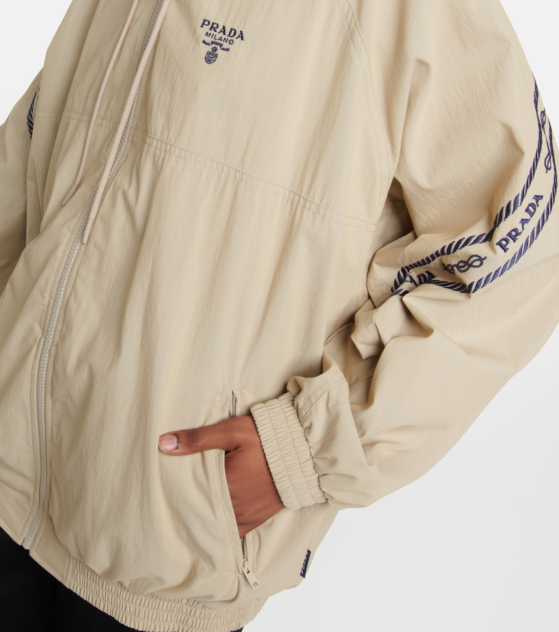 Mit dieser Jacke im Retro-Stil von Prada sind Sie auf jedes Wetter vorbereitet. Das Design aus einem Baumwollgemisch besticht durch kontrastierende Stickereien sowie Logodetails und verleiht Ihnen mit seiner Oversize-Silhouette einen besonders lässigen Look.