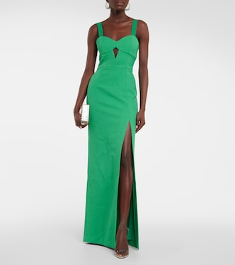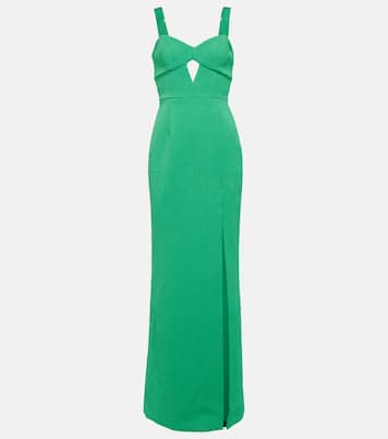 Those surrounding you will turn green with envy when they see you in this maxi dress from Rebecca Vallance. This piece features an alluring cutout at the chest and a thigh-high side-slit at the left leg.