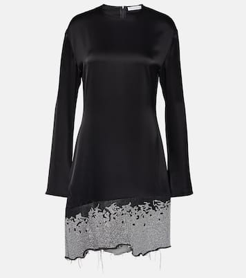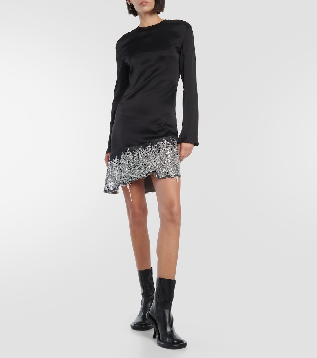 Desde ropa informal hasta sastrería, JW Anderson combina la modernidad con el estilo en cada modelo. Este vestido corto de satén negro tiene un bajo brillante adornado y detalles deconstruidos deshilachados que compensan la languidez de la manga larga.