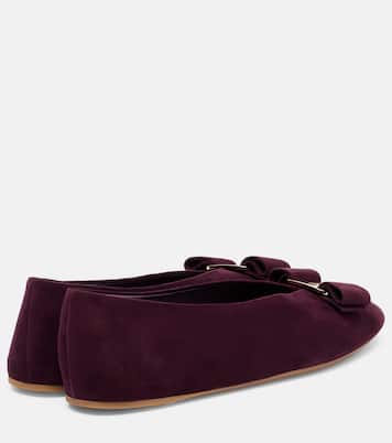La réputation d'exception de Ferragamo repose sur un savoir-faire italien inégalé et un héritage d'élégance. Les ballerines Vanna sont réalisées en daim et présentent une silhouette classique ornée d’un détail doré contemporain sur la tige.