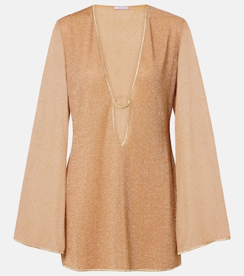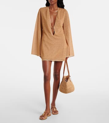 Faites sensation avec cette robe de plage dotée d’une encolure en V profonde. Cette pièce est réalisée à partir du tissu Lumière d’Oséree, qui est parcouru de fils métallisés très fins pour obtenir une finition scintillante.