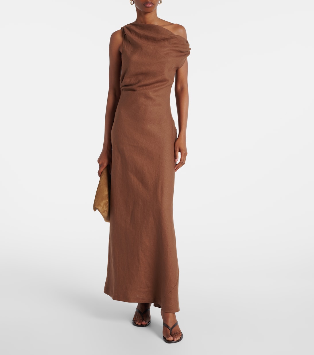 Getreu dem Ethos von Faithfull rückt dieses Design die Leidenschaft der Marke für Reisen und den Sommer in den Fokus. Das Suis Maxikleid aus reinem Leinen präsentiert sich mit einem modernen asymmetrischen Ausschnitt und leichten Raffungen an der Taille.