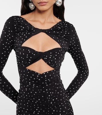 Crystal-embellished cutout jersey midi dress
