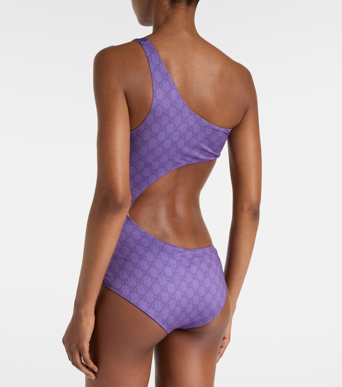 El glamour marítimo define este bañador de Gucci. El diseño de un solo hombro presenta el icónico motivo GG de la marca por toda la prenda, y presenta una cautivadora abertura.