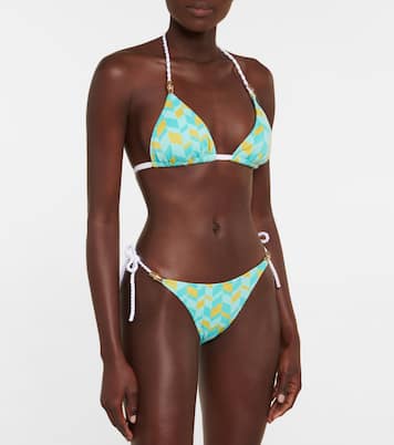 El top de bikini Ibizia de Heidi Klein lleva un colorido estampado geométrico. El modelo de cobertura mínima tiene una silueta triangular y tiras en forma de cuerda. Combínalo con las bragas St Tropez a juego.