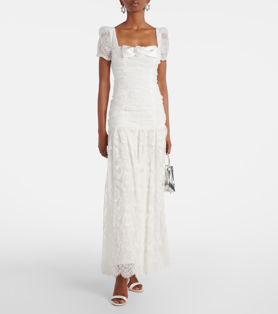 Mit jedem ihrer femininen Designs verfolgt die beliebte Brand Self-Portrait das Ziel, Frauen zu stärken. Dieses Kleid besteht aus einem gerafften Oberteil aus Tüll und einem voluminösen Maxirock. Eine Schleife auf Brusthöhe vollendet den eleganten Style.