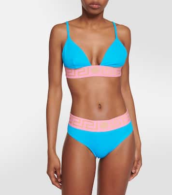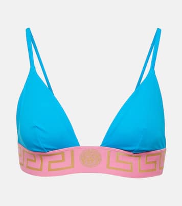 17세기의 섬세한 장식을 연상시키는 베르사체(Versace)의 바로크풍 프린트를 만나보세요. 트라이앵글 비키니 탑은 Greca Border 장식과 지지력을 선사하는 언더 버스트 밴드가 특징이며 여름의 감성을 선사하는 컬러 블로킹 구조를 자랑합니다.
