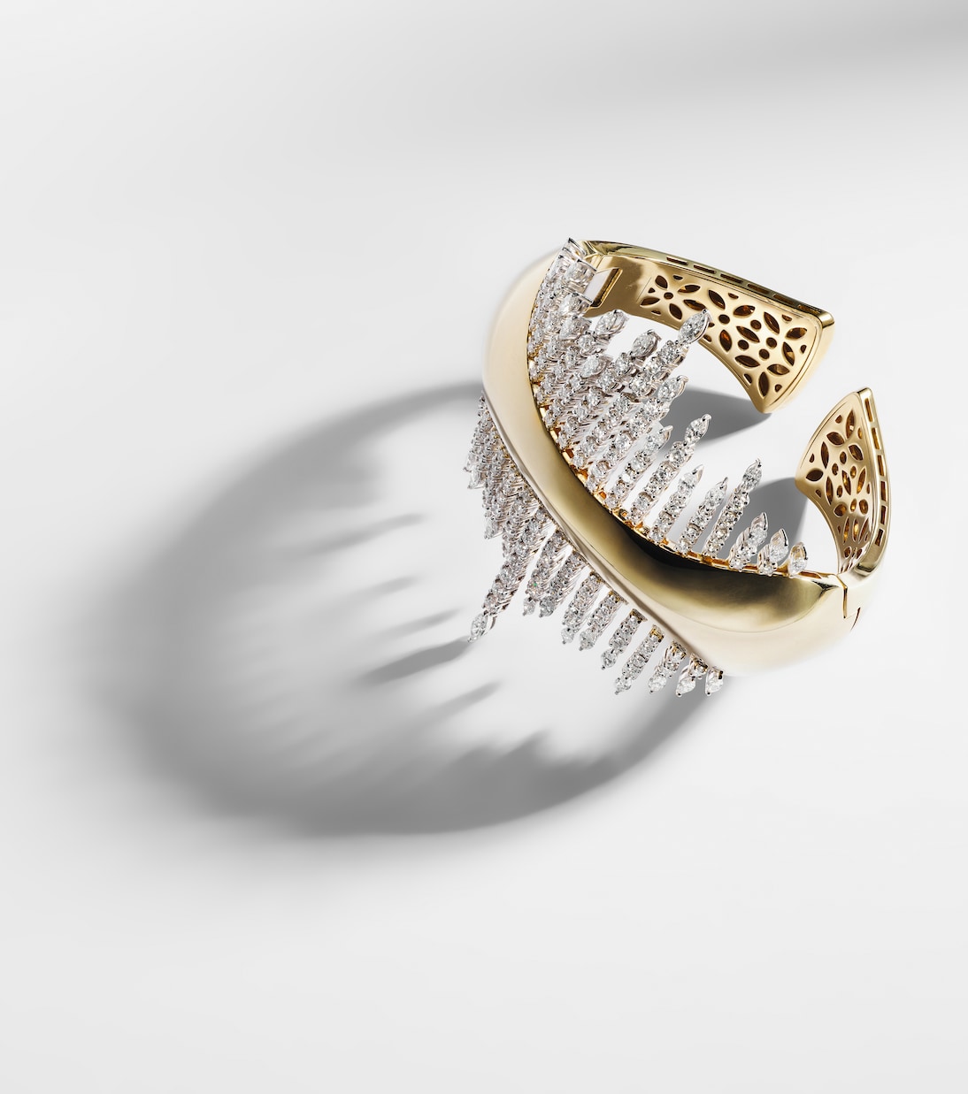 세대를 거쳐 물려주고 싶게 만드는 독창적인 주얼리를 만드는 예프렘(Yeprem)의 디자인을 만나보세요. 18kt 옐로 골드 소재로 정교하게 제작된 이 Golden Strada 커프 브레이슬릿은 총 6.86 캐럿의 라운드와 마르퀴즈 컷의 다이아몬드가 아름답게 세팅되어 있습니다.