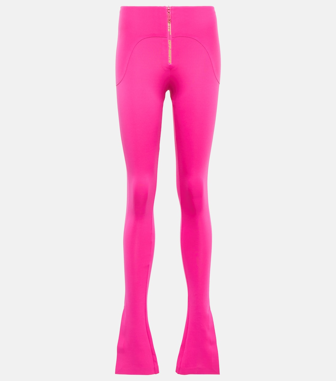 Diese pinkfarbene Leggings von Off-White verleiht Ihrer Athleisure-Kollektion einen fröhlichen Farbakzent. Das ausgestellte Design wird durch einen Logoschriftzug auf dem Reißverschluss abgerundet.