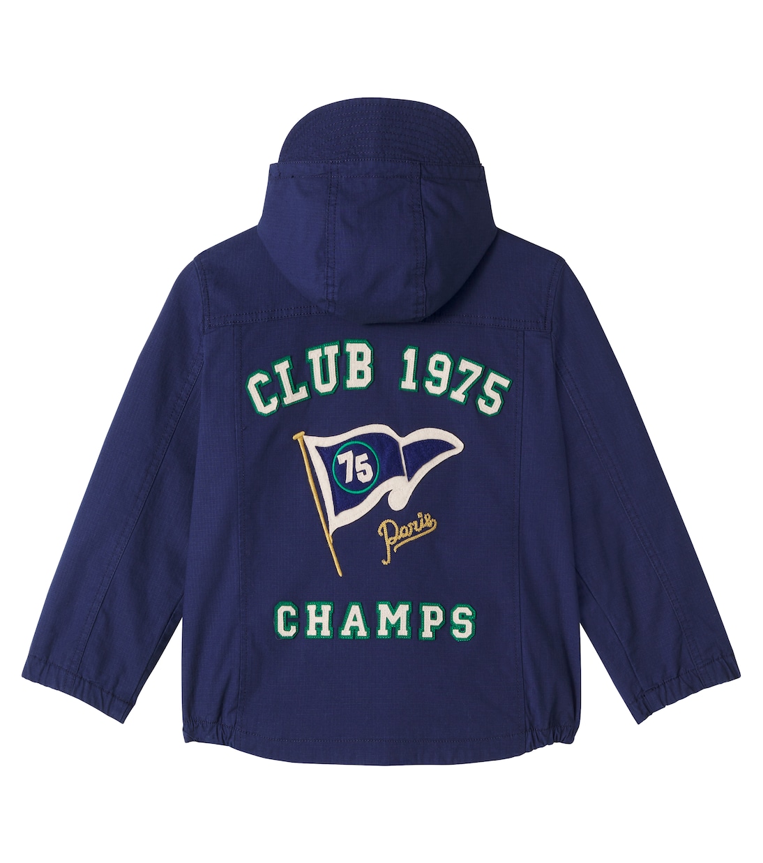 Build little ones a timeless look with the refined French-chic styles of Bonpoint. The Léon rain jacket features a hood for tumultuous weather and varsity-inspired patch-appliqués at the back.