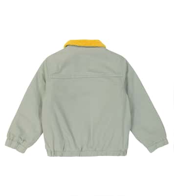 Stella McCartney Kids designs clothing for everyday adventures with vibrant colors and imaginative prints showcased on consciously crafted fabrics. This blue denim jacket has a plush collar and colorful embroidered patches.